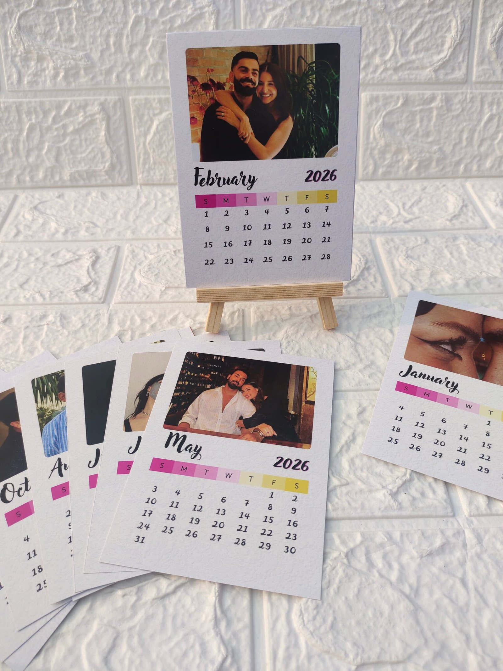 Select your preferred option [ with stand / without stand] ➡️Upload 12 photos ➡️Mention date to highlight in the ‘custom message’ section ( if any) ➡️ Add to cart 🛒 ➡️ Place the order.